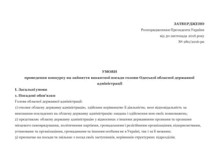 Умови проведення конкурсу на зайняття вакантної посади голови Одеської обласної державної адміністрації