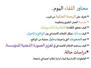 يتناول الوثيقة الجهود المبذولة في تنظيم العمل الخيري وتطويره، بالإضافة إلى دور الإعلام الاجتماعي في تعزيز الفعالية الكفاءة. يسلط الضوء على الصعوبات التي واجهت عملية التنظيم وكيفية التغلب عليها. كما يناقش الخطوات الأساسية اللازمة لبناء مؤسسات ناجحة في هذا المجال.
