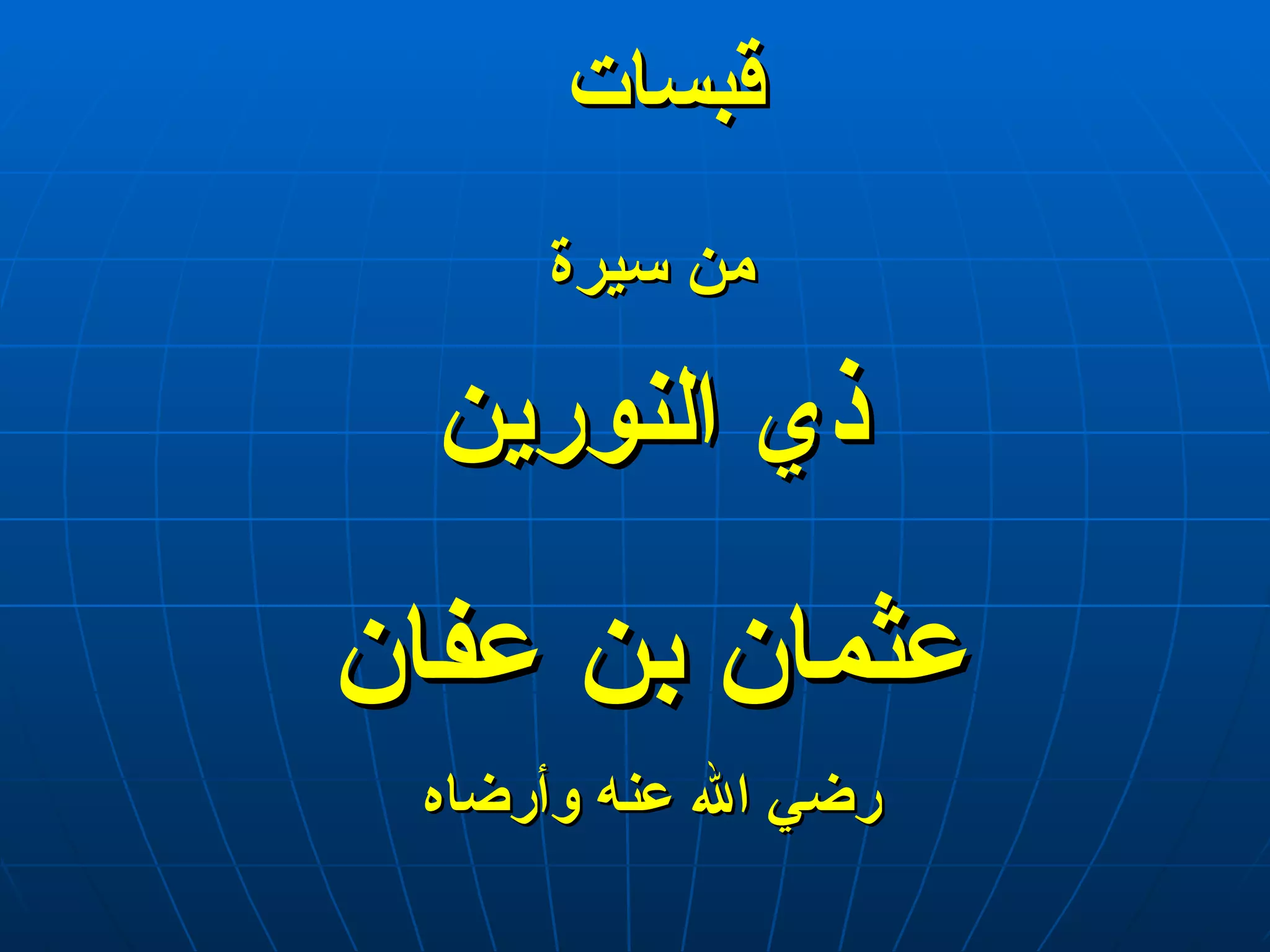 عثمان بن عفان رضي الله عنه هو ثالث الخلفاء الراشدين وأحد العشرة المبشرين بالجنة، تزوج رقية بنت النبي محمد وأسلم في بداية دعوته. عُرف بمواقف شجاعة مثل حفر بئر رومة وتجهيز جيش العسرة، وبرزت شخصيته بفضل حيائه حتى من الملائكة. توفي رضي الله عنه شهيدًا بعد تعرضه للفتن، وكان له دور بارز في قيادة الأمة ورعايتها.