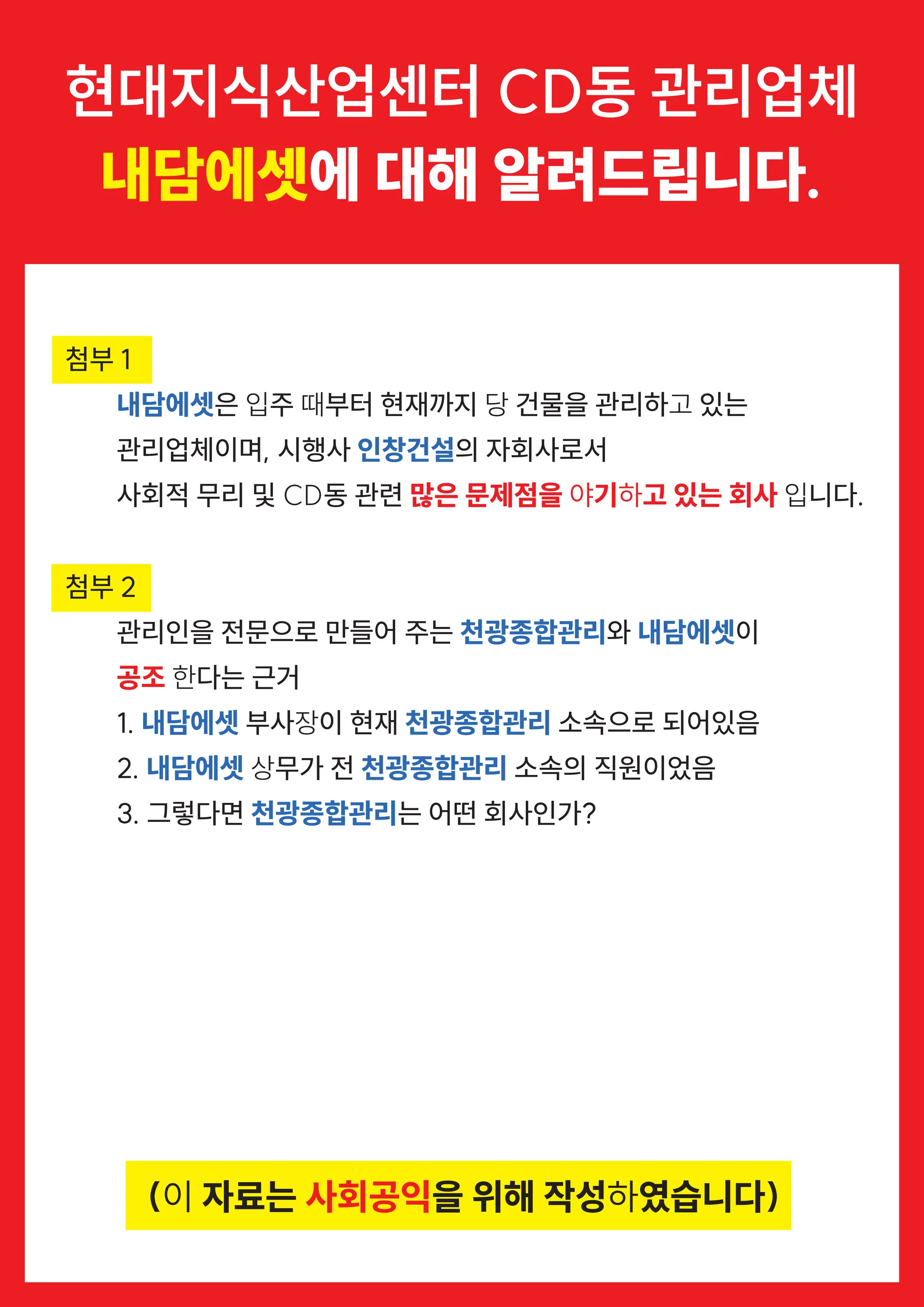 2-2) AB동은 결국천광종합관리라는 관리인 선임 전문업체의