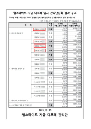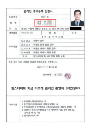 천광종합관리가 관리하는 힐스테이트 지금 디포레 관리위원으로