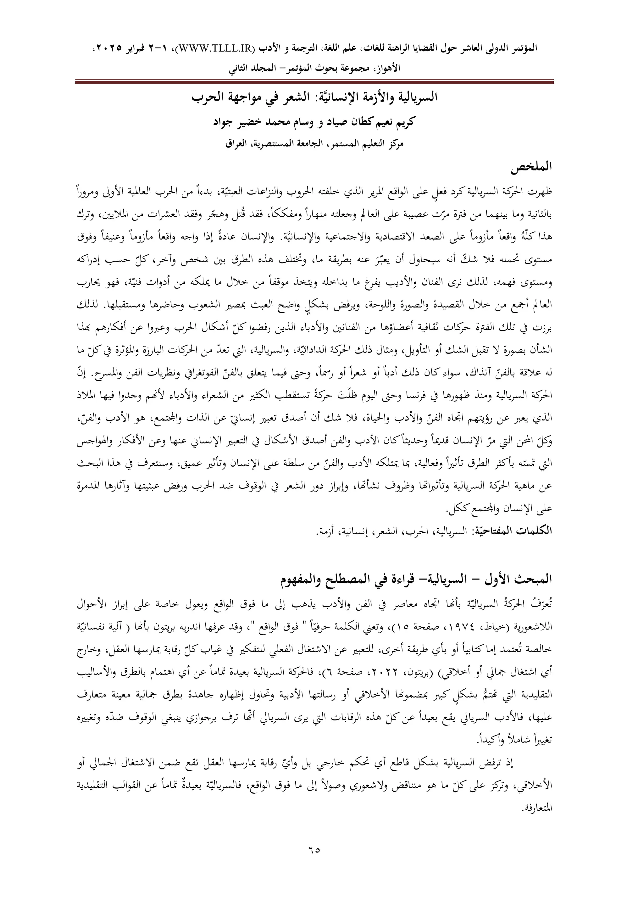 السريالية والأزمة الإنسانيَّة: الشعر في مواجهة الحرب