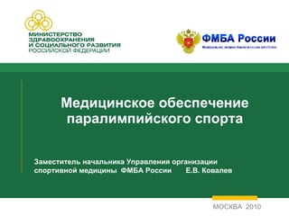 Документ описывает систему медицинского обеспечения спортсменов паралимпийских сборных команд России, включая организацию медико-санитарного и медико-биологического обеспечения, проведение углубленных медицинских обследований и реабилитации. Основное внимание уделено внедрению инновационных технологий и разработке индивидуализированных подходов к медицинскому сопровождению спортсменов для достижения высоких результатов на международной арене. Также обсуждаются задачи по повышению квалификации медицинского персонала и созданию специализированных центров для поддержки паралимпийского спорта.