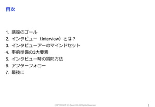 インタビュー入門講座 1. 2. COPYRIGHT (C) Team100.All Rights Reserved.