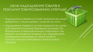 Облік надходження товарів в результаті товарообмінних операцій,