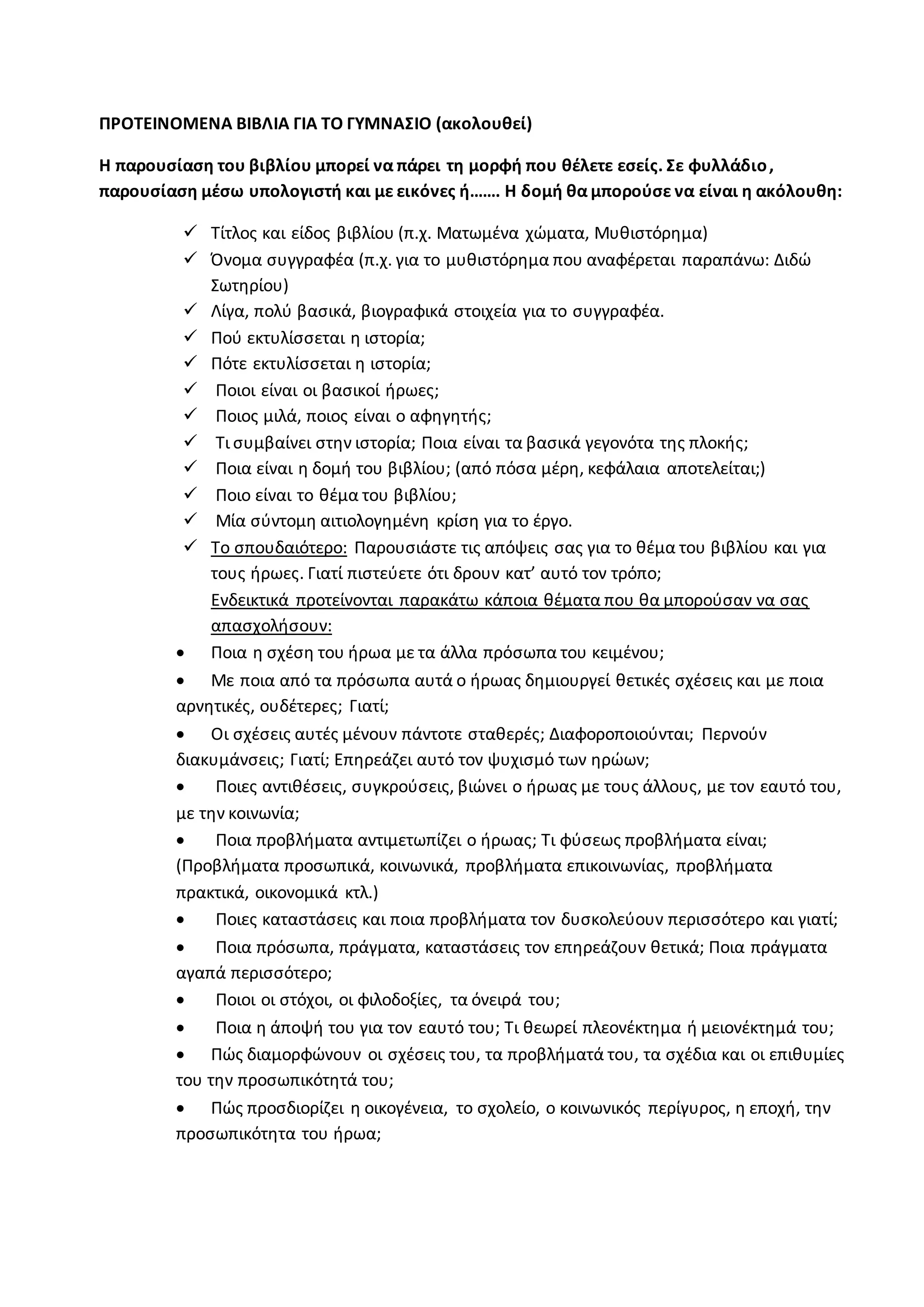 ΠΡΟΤΕΙΝΟΜΕΝΑ ΒΙΒΛΙΑ ΓΙΑΤΟ ΓΥΜΝΑΣΙΟ (ακολουθεί)