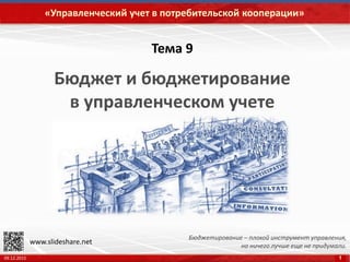 Документ рассматривает роль бюджетирования в управленческом учете, акцентируя внимание на его целях, задачах и процессе реализации. Подчеркивается значимость управленческого учета для эффективного управления предприятиями и определения необходимых ресурсов. Также обсуждаются плюсы и недостатки систем бюджетирования, а также их влияние на стратегическое планирование и оптимизацию деятельности организаций.