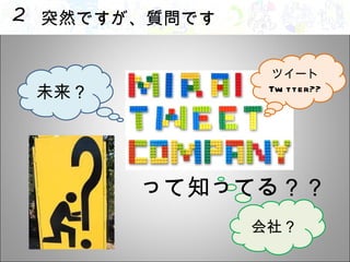 みなさん、ミライツイートカンパニーと聞いて何を想いうかべますか?