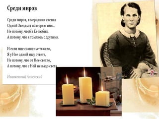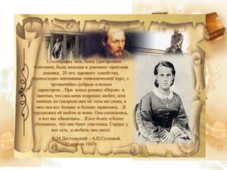 Документ посвящен 195-летию Ф. М. Достоевского и литературно-музыкальному вечеру, в котором рассматриваются три его любви: Мария Исаева, Апполинария Суслова и Анна Сниткина. Описываются моменты его жизни, связанные с этими женщинами, их влияние на творчество писателя и личные переживания. В тексте подчеркивается, как каждая из этих любви формировала его как человека и автора.