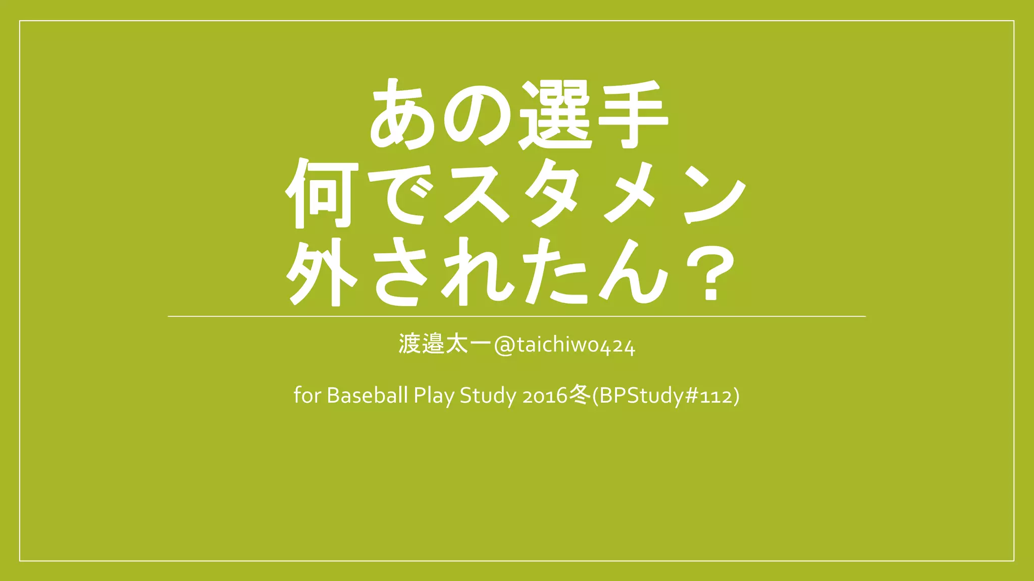 あの選手 何でスタメン 外されたん? 渡邉太一@taichiw0424 for Baseball Play