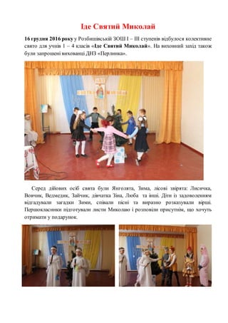 свято для учнів 1 – 4 класів «Іде Святий Миколай». На виховний захід також