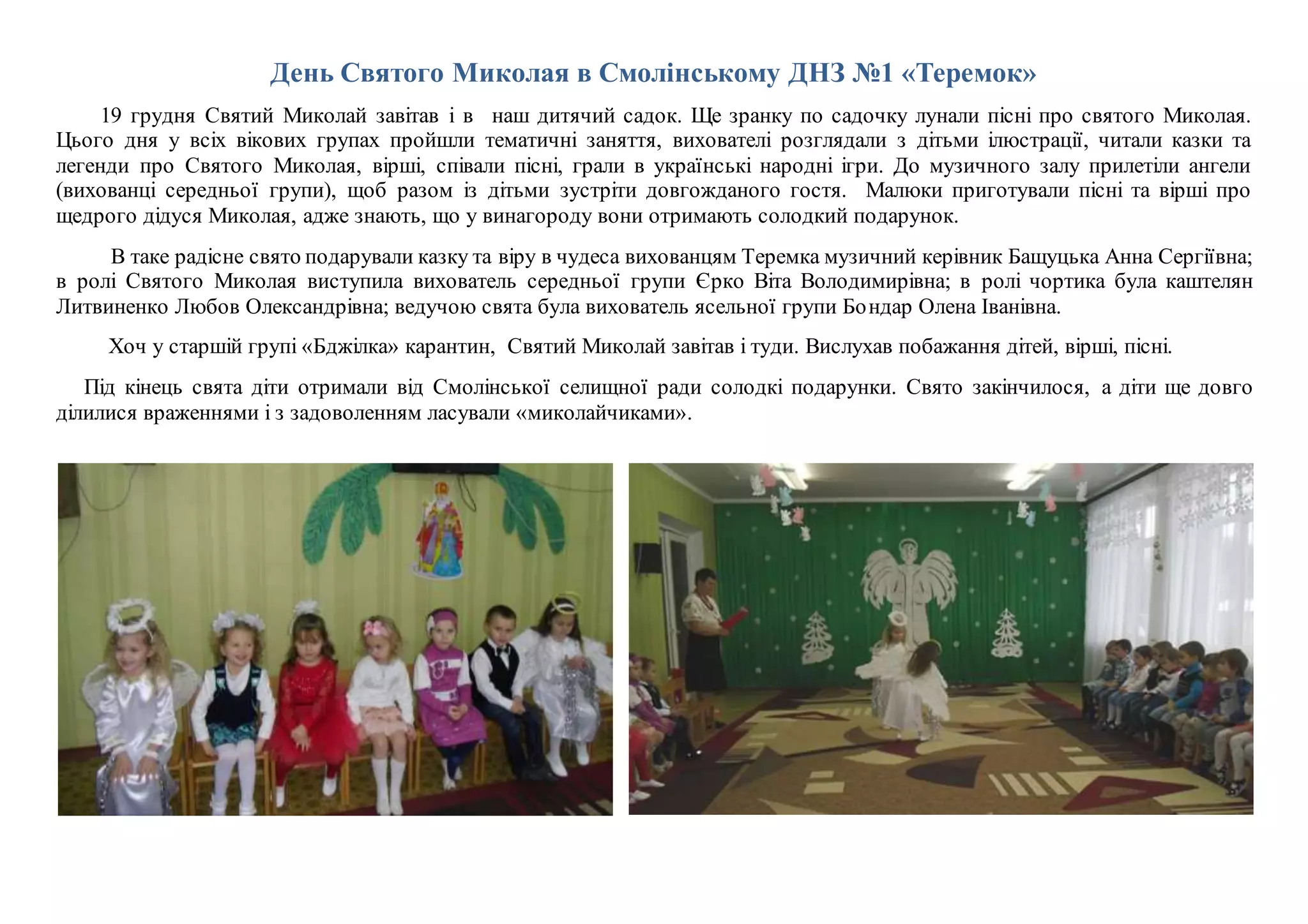 День Святого Миколаяв Смолінському ДНЗ №1 «Теремок»