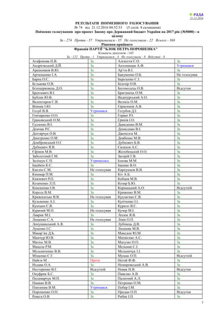 Поіменне голосування про проект Закону про Державний бюджет України на 2017 рік (№5000) - в