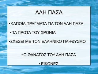● Ο ΘΑΝΑΤΟΣ ΤΟΥ ΑΛΗ ΠΑΣΑ