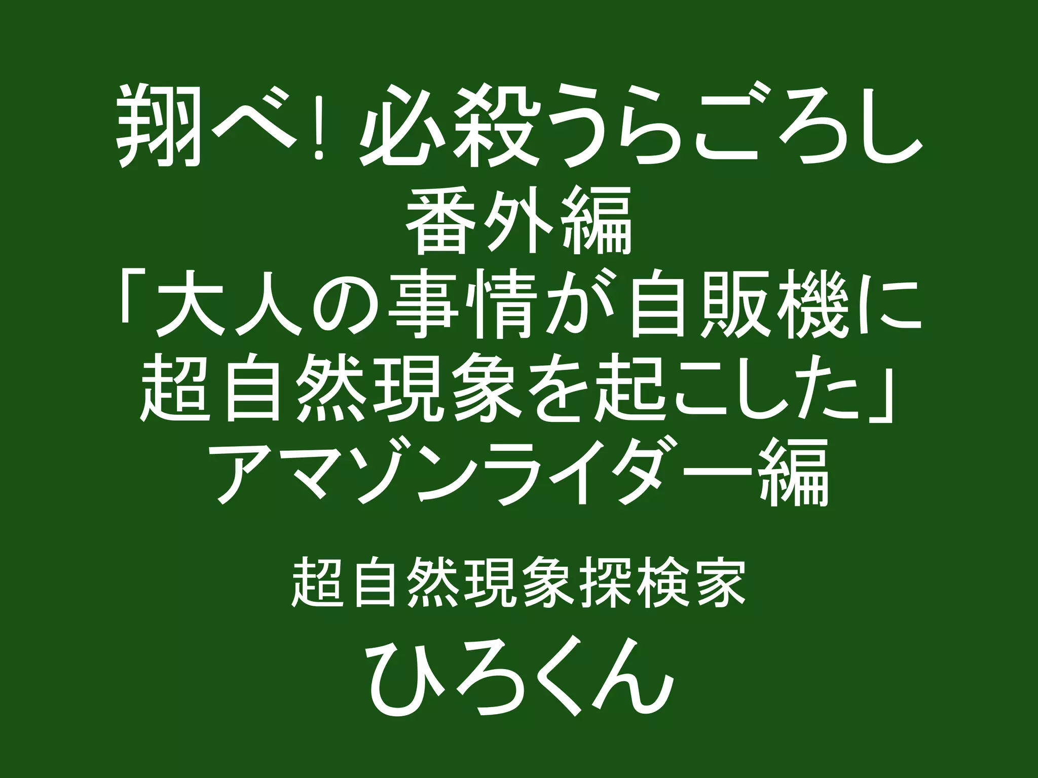 翔べ! 必殺うらごろし 番外編 「大人の事情が自販機に 超自然現象を起こした」 アマゾンライダー編 超自然現象探検家 ひろくん