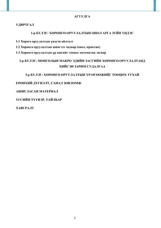 2. Аюурзана.Ц “ ХӨРӨНГӨ ОРУУЛАЛТ: БОДЛОГО, ЭРХ ЗҮЙН ЗОХИЦУУЛАЛТ,