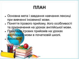 навчання іноземній лексиці можна виділити гру.