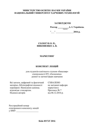конспект дає основи знань та практичні навички з питань маркетингової