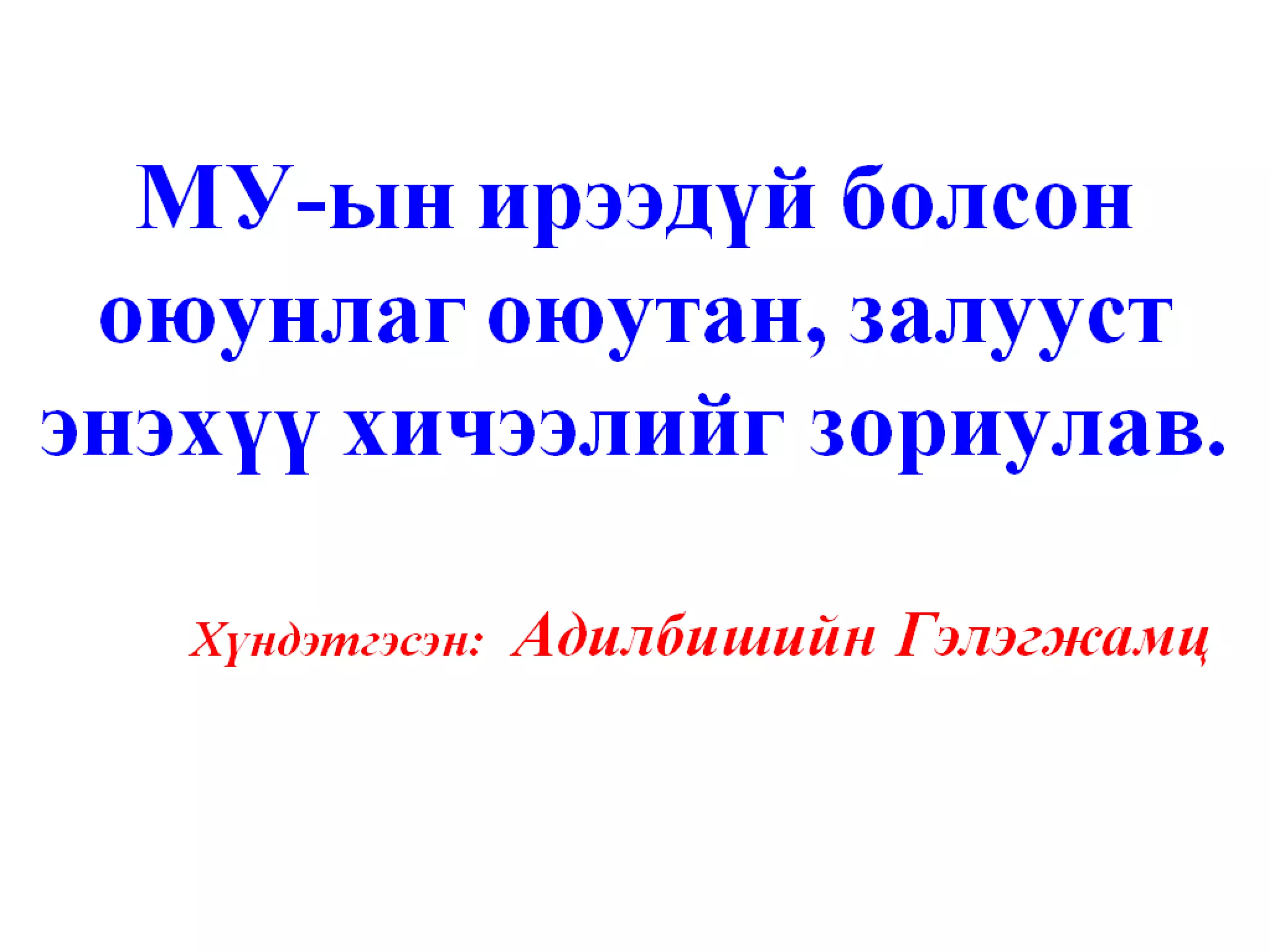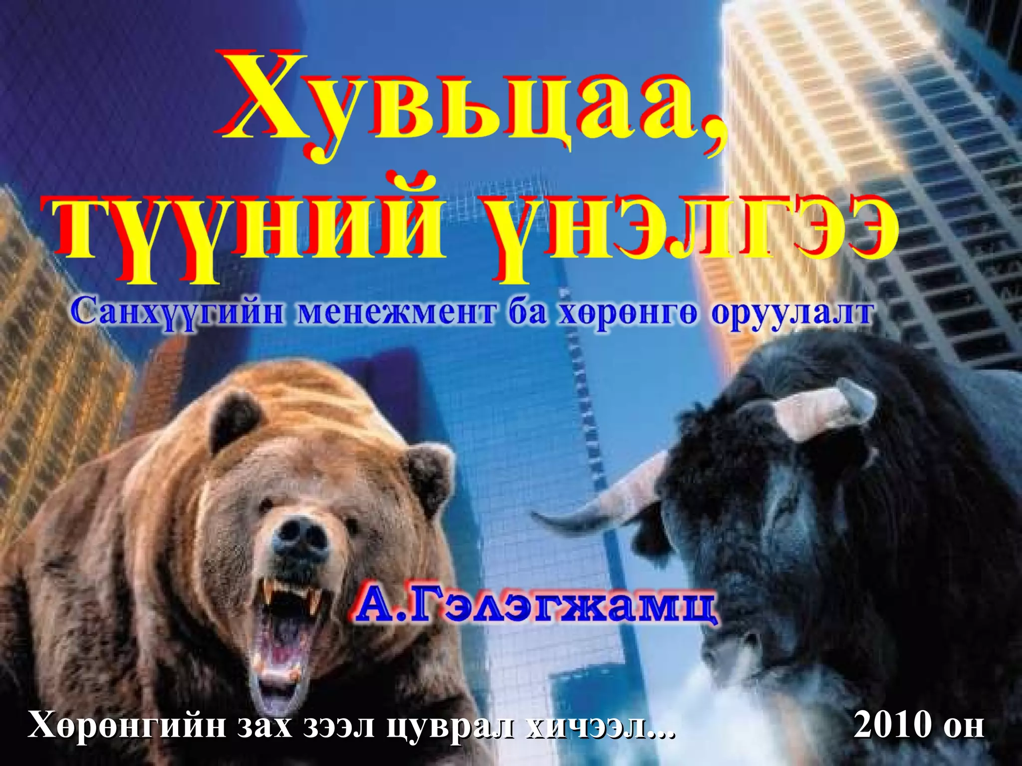 Ашигласан ном, сурахбичиг, эх сурвалжууд 2/15/2010 Л.Жаргал, Ж.Бат-Өлзий “Санхүүгийн менежмент” 2008 он, УБ хот П.Баянсан “Бизнесийн санхүү” 2004 он , УБ хот Б.Бүжинлхам “Санхүүгийн удирдлага” 2004 он, УБ хот Bradford D.Jordan, Thomas W.Miller “Fundamentals of Investment, valuation and management” 4 th edition Bodie, Kane, Marcus “Investment” 6 th edition Ross W.Jordan “Fundamentals of corporate finance” 8 th edition Richard A Brealey, Stewart C Myers “ Principles of Corporate Finance ” 2007 Zvi Bodie, Alex Kane, Alan J.Marcus, Alan J.Marcus, Alex Kane “ Essentials of Investments ” 6 th edition 2005 Frederic S.Mishkin “ Economics of Money, Banking and Financial Markets ” 2009 J.Van Horne, John M.Wachowicz “ Fundamentals of Financial Management ” 13 th edition 2008 Alan C.Shapiro “ Multinational Financial Management ” 2009 Randolph Westerfield “ Fundamentals of Corporate Finance ” 2009 Eugene F.Brigham, Joel F.Houston “ Fundamentals of Financial Management ” 6 th edition 2008 Eugene F.Brigham, Joel F.Houston “ Fundamentals of Financial Management ” 12 th edition 2009 Stanley B.Block, Geoffrey A.Hirt, Bartley R.Danielsen “ Foundations of Financial Management ” 13 th edition 2008 Keith Cuthbertson, Dirk Nitzsche “ Investments ” 2 th edition 2008 Robert Parrino, David S.Kidwell “ Fundamentals of Corporate Finance ” 2008 John Tennent “ Guide to Financial Management ” 2008 Zvi Bodie, Alex Kane, Alan J.Marcus, Alan J.Marcus, Alex Kane “ Essentials of Investments ” 2005 Eugene F.Brigham, Joel F.Houston “ Fundamentals of Financial Management ” 6 th edition 2008