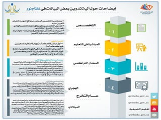 يتناول الوثيقة خطوات تعديل البيانات الشخصية للمستخدمين في نظام التعليم، حيث يمكن تعديل المعلومات الصحيحة وتقليل الأخطاء عبر خطوات محددة. تتطلب عملية التحديث إرفاق مستندات صحيحة والقيام بالضغط على الأزرار المناسبة لضمان النجاح في تقديم الطلب. تُحدد عمليات الاعتماد والرفض بناءً على مراجعة دقيقة للبيانات المرسلة.