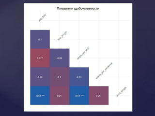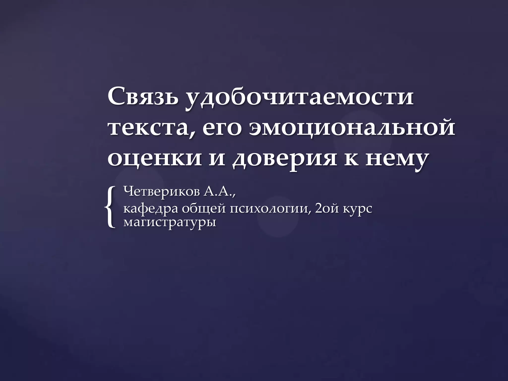Документ исследует взаимосвязь между удобочитаемостью текста, его эмоциональной оценкой и уровнем доверия к нему. Результаты показывают, что удобочитаемость и аффективная оценка текста связаны друг с другом, а также с доверием к нему. Основной вывод заключается в том, что чем проще текст, тем выше вероятность его положительной оценки и доверия к нему.