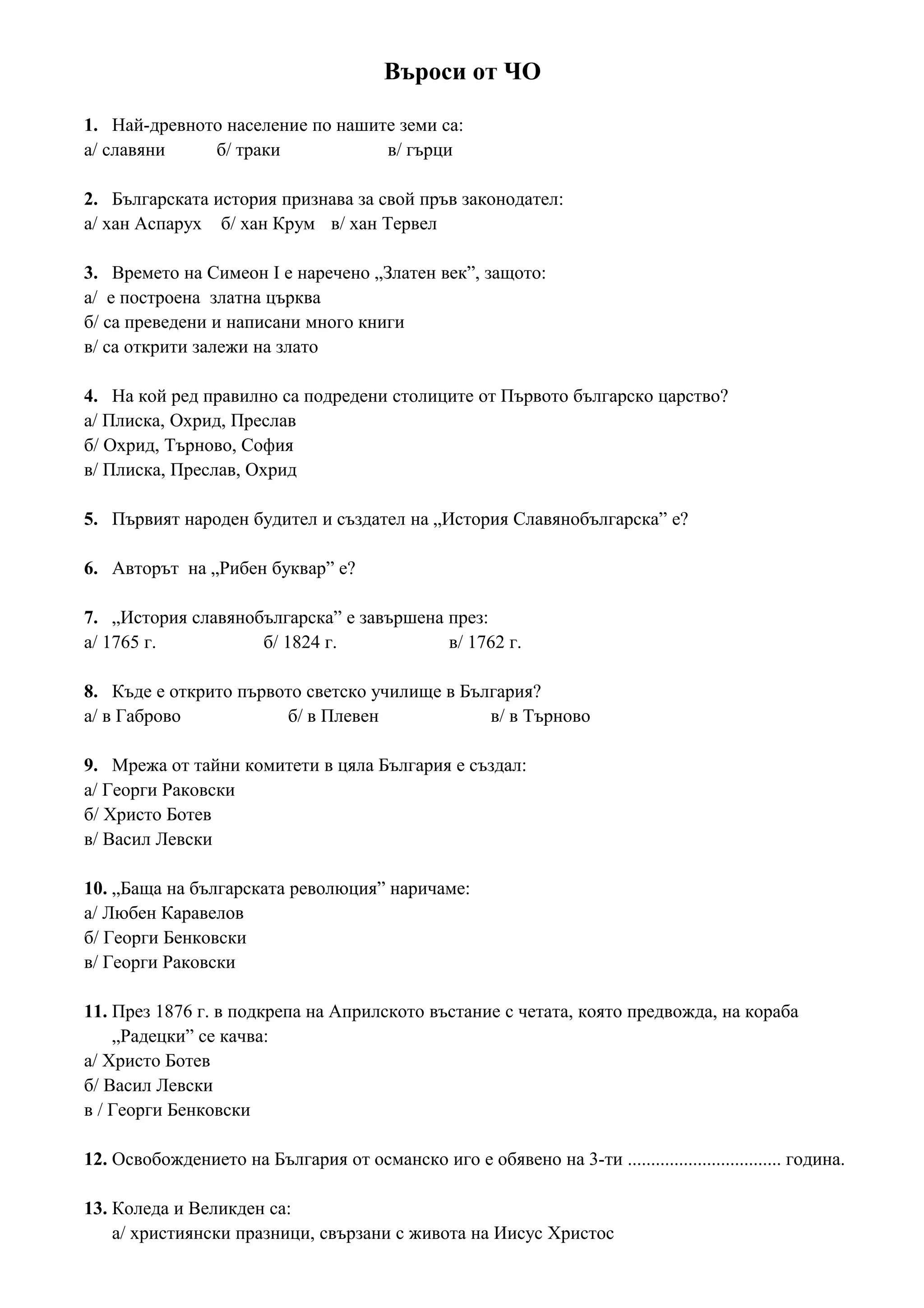 12. Освобождението на България от османско иго е обявено на 3-ти ................................. година.