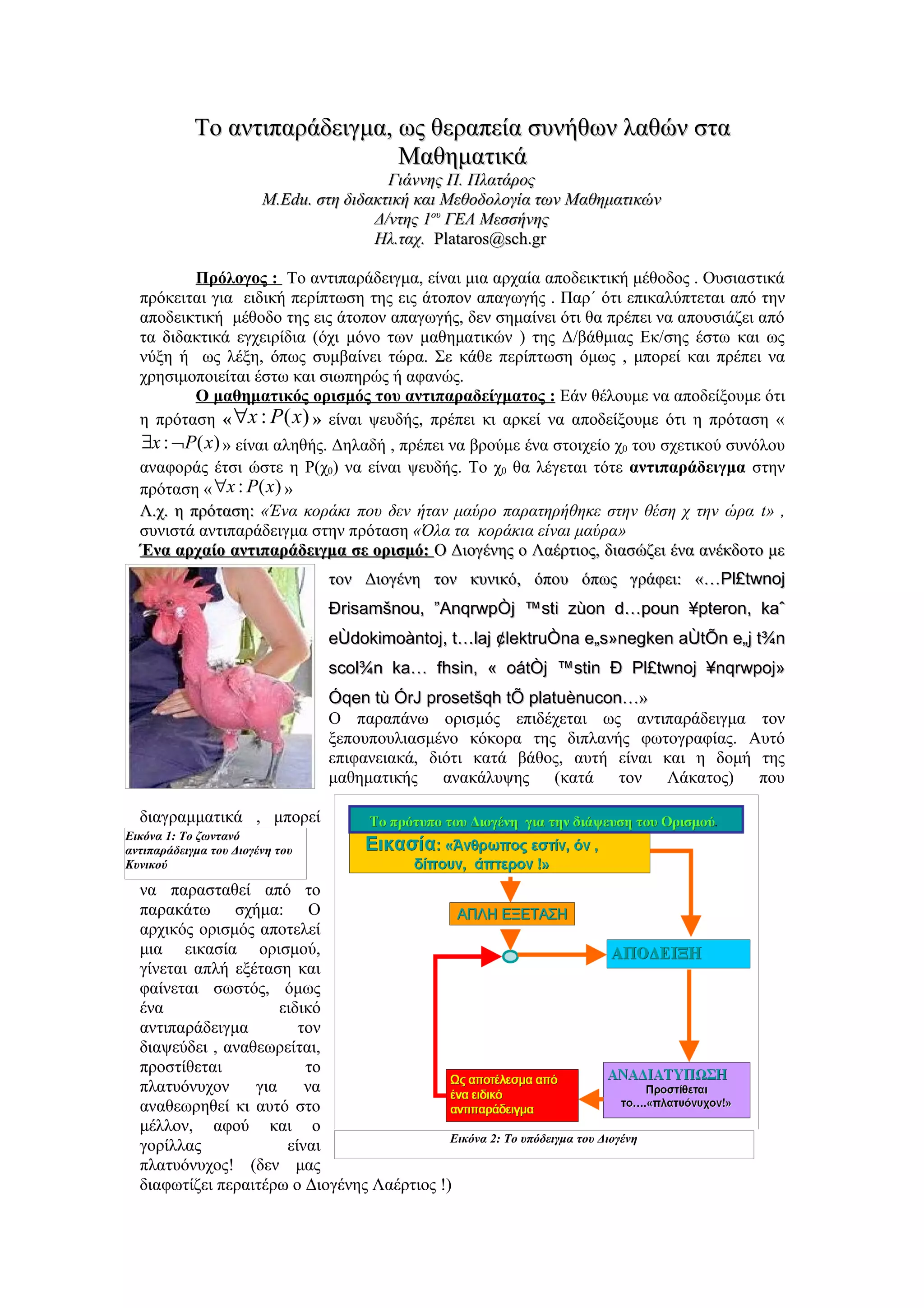 Πρόλογος : Το αντιπαράδειγμα, είναι μια αρχαία αποδεικτική μέθοδος . Ουσιαστικά