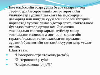 *Ногоорогч стрептококк/30-70%/