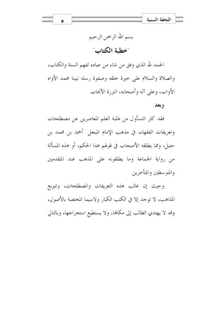 ﺍﻟﺘﺤﻔﺔ ﺍﻟﺴﻨﻴﺔ ﻓﻬﺮﺱ ﺍﻟﻜﺘﺎﺏ ﺍﻟﺼﻔﺤﺔ ﺍﳌﻮﺿﻮﻉ ٥ ............................................................................ ﺧﻄﺔ ﺍﻟﻜﺘﺎﺏ ٧ ﺍﳌﺒﺎﺩﺉ ﺍﻟﻌﺸﺮﺓ ﻟﻔﻦ ﺍﻟﻔﻘﻪ....................................................... ١١ ﺗﺪﻭﻳﻦ ﺍﳌﺬﻫﺐ.......................................................................... ٢١ ﺍﻷﺻﻮﻝ ﻋﻨﺪ ﺍﻷﺋﻤﺔ ﺍﻷﺭﺑﻌﺔ................................................... ٤١ ﺍﻟﻔﻮﺍﺋﺪ........................................................................................ ١٢ ﻛﺘﺎﺏ ﺍﻟﻄﻬﺎﺭﺓ......................................................................... ٩٢ ﻛﺘﺎﺏ ﺍﻟﺼﻼﺓ........................................................................... ٣٣ ﻛﺘﺎﺏ ﺍﻟﺰﻛﺎﺓ............................................................................ ٥٣ ﻛﺘﺎﺏ ﺍﻟﺼﻴﺎﻡ............................................................................ ٧٣ ﻛﺘﺎﺏ ﺍﳊﺞ............................................................................... ٣٤ ﻛﺘﺎﺏ ﺍﻟﺒﻴﻊ................................................................................ ٥٥ ﻛﺘﺎﺏ ﺍﻟﻨﻜﺎﺡ........................................................................... ٩٥ ﻛﺘﺎﺏ ﺍﻟﻔﺮﺍﺋﺾ......................................................................... ٥٦ ﻛﺘﺎﺏ ﺍﻟﺮﺿﺎﻉ......................................................................... ٦٦ ﻓﻮﺍﺋﺪ ﻋﺎﻣﻪ................................................................................. ٤٩ ﻓﺎﺋﺪﺓ ﰲ ﺗﺮﺍﺟﻢ ﺍﻷﺻﺤﺎﺏ.................................................... ٩٢١ ﺗﺘﻤﺔ.............................................................................................