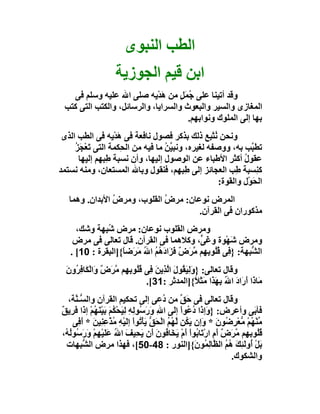 يتناول كتاب "الطب النبوي" لابن قيم الجوزية أسس الطب وعلاقته بالدين، موضحًا أنواع الأمراض وأسبابها، سواء كانت أمراض القلوب أو الأبدان. كما يبرز أهمية النهج النبوي في الطب والتعاليم الصحية الواردة في القرآن والسنة. يركز الكتاب على أن الصحة تأتي من اتباع هدي النبي وأن لكل مرض سواء كان جسديًا أو روحيًا علاجًا مناسبًا.