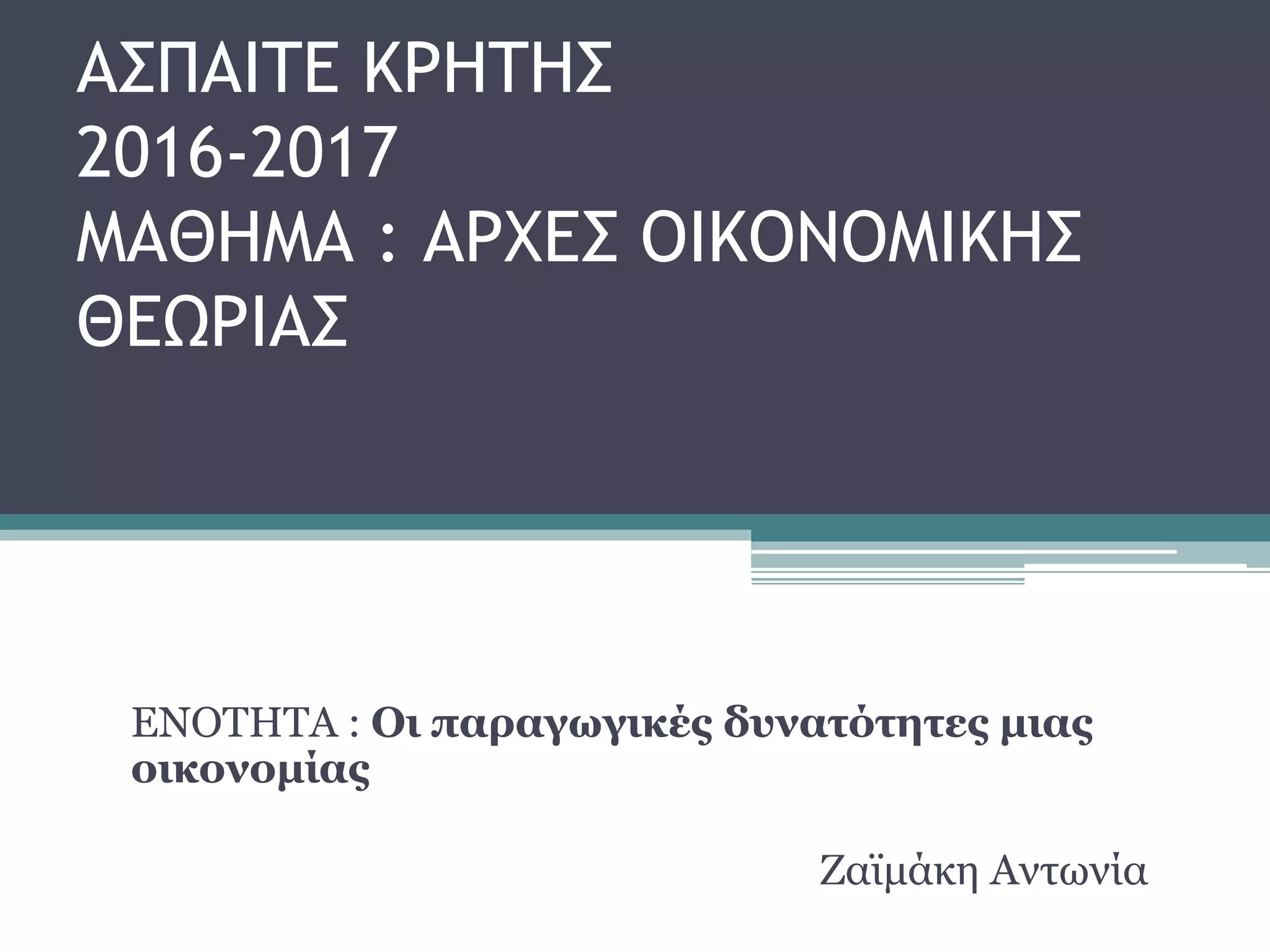 • Κάθεοικονομία έχει τη δυνατότητα να παράγει,