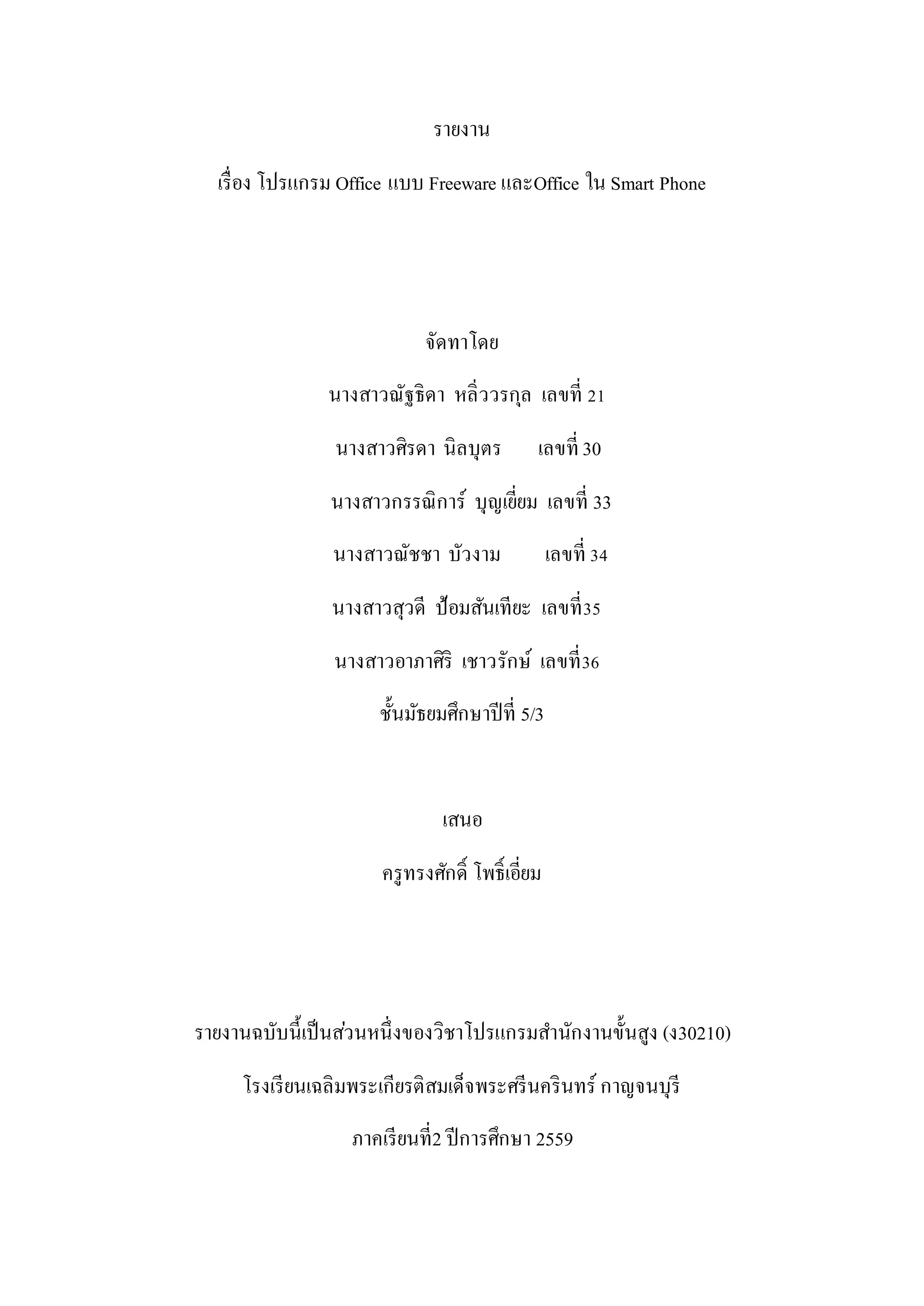 รายงานฉบับนี้เป็นส่วนหนึ่งของวิชาโปรแกรมสานักงานขั้นสูง (ง30210)