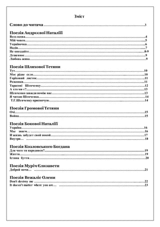 Т.Г.Шевченку присвячую…………………………………………………………...…………………14