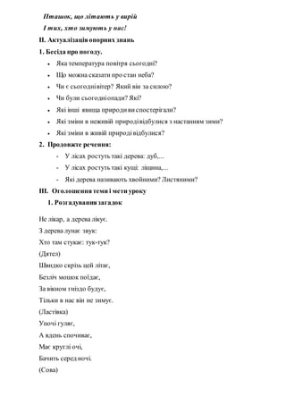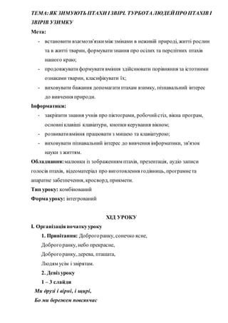 ТЕМА:ЯК ЗИМУЮТЬ ПТАХИІЗВІРІ. ТУРБОТА ЛЮДЕЙПРО ПТАХІВ І