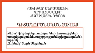 Հոդված- Ֆլեշմոբի կազմակերպումը որպես ուսուցման նոր ձև