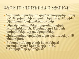 ակումբի գործունեության մասին:
