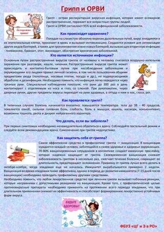 Грипп и ОРВИ являются острыми респираторными вирусными инфекциями, охватывающими все возрастные группы и составляющими 95% всех инфекционных заболеваний. Основной путь передачи вирусов — воздушно-капельный, а также контактно-бытовой, что делает важным соблюдение личной гигиены и вакцинацию. Вакцинация является наиболее эффективным средством профилактики гриппа и рекомендуется проводить в октябре-ноябре для создания иммунной прослойки.