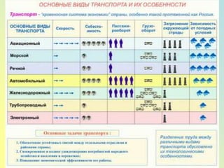 Документ описывает инфраструктурный комплекс, который связывает различные отрасли экономики, производящие услуги. В нем рассматривается роль транспортной системы, включая эффективность различных видов транспорта и их стоимость, а также особенности железнодорожного сообщения в России. Упоминается связь России с другими странами через транспортные магистрали и развитие инфраструктуры для повышения грузопотока.