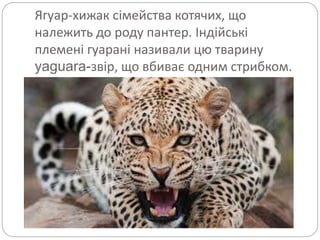 ягуар 1. 2. 3. Масивне кремезне тіло ягуара досягає в довжину від