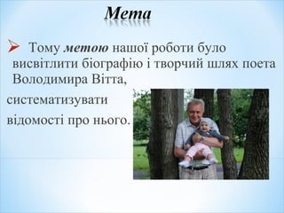 1. Вірші ВолодимираВітта ліричні, романтичні, сповнені болючих роздумів і