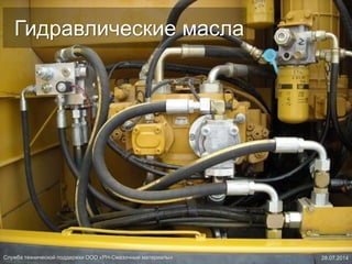 Документ содержит информацию о гидравлических маслах и их применении в различных отраслях, описывая технические характеристики, типы насосов, а также основные эксплуатационные показатели. Также обсуждаются проблемы, связанные с гидравлическими системами, и требования к маслам, включая их состав и классификацию. Упоминаются эволюция и спецификации масел, а также их соответствие стандартам и спецификациям OEM.