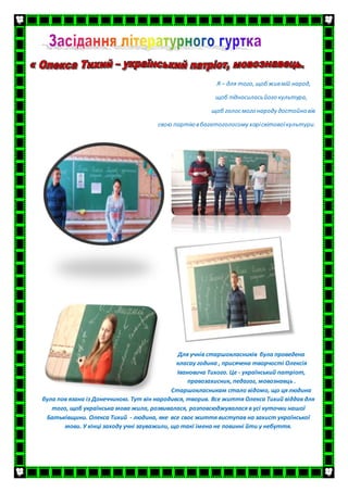 Батьківщини. Олекса Тихий - людина, яке все своє життя виступав на захист української