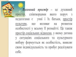 Виховнийпростір – погоджені та свідомо підтримувані задля забезпечення
