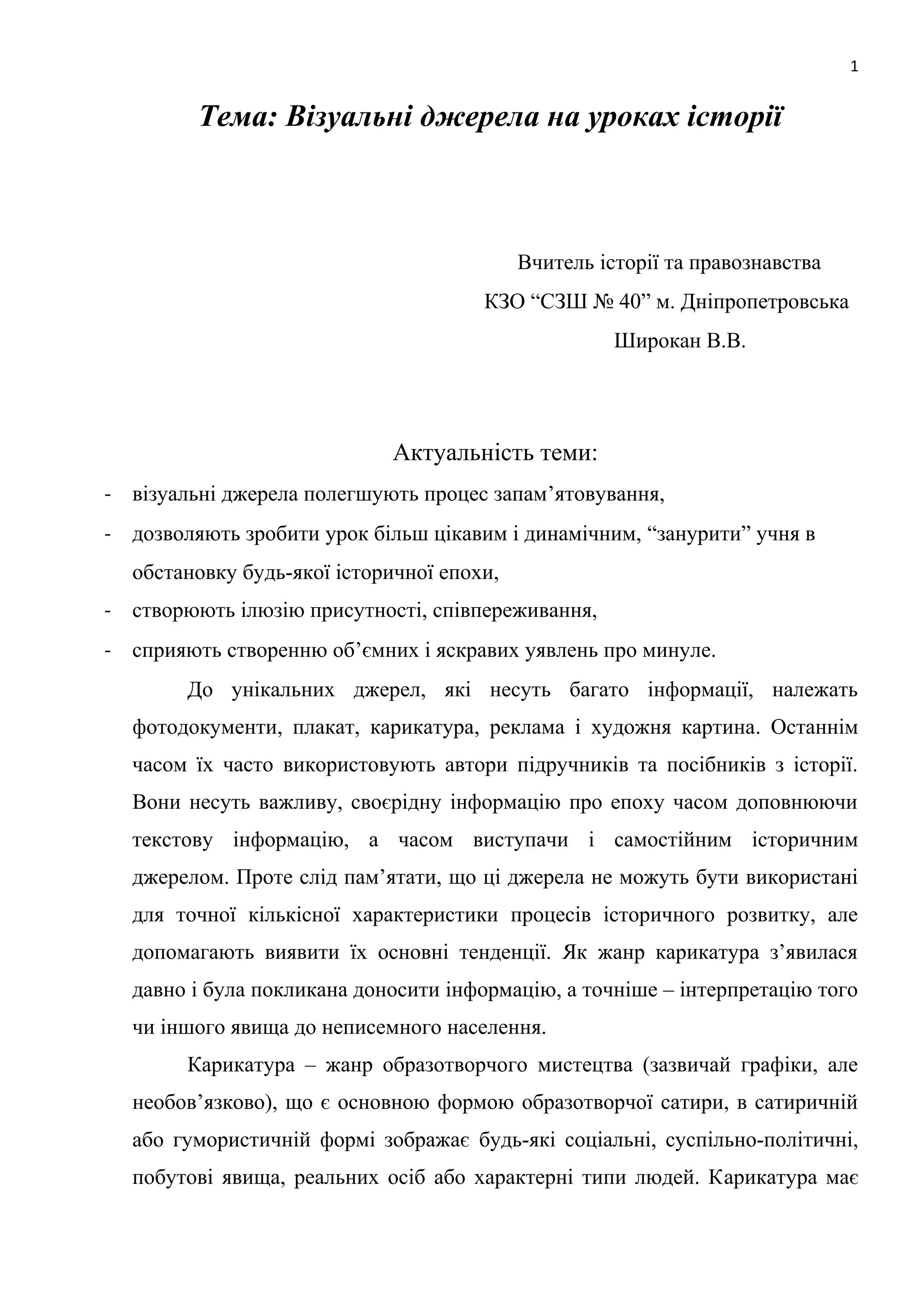 Інтерпретацію та аналіз політичної карикатури здійснюю на уроках за