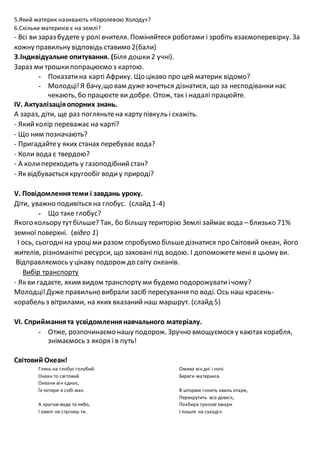 І ось, сьогодніна уроціми разом спробуємо більшедізнатися про Світовий океан, його