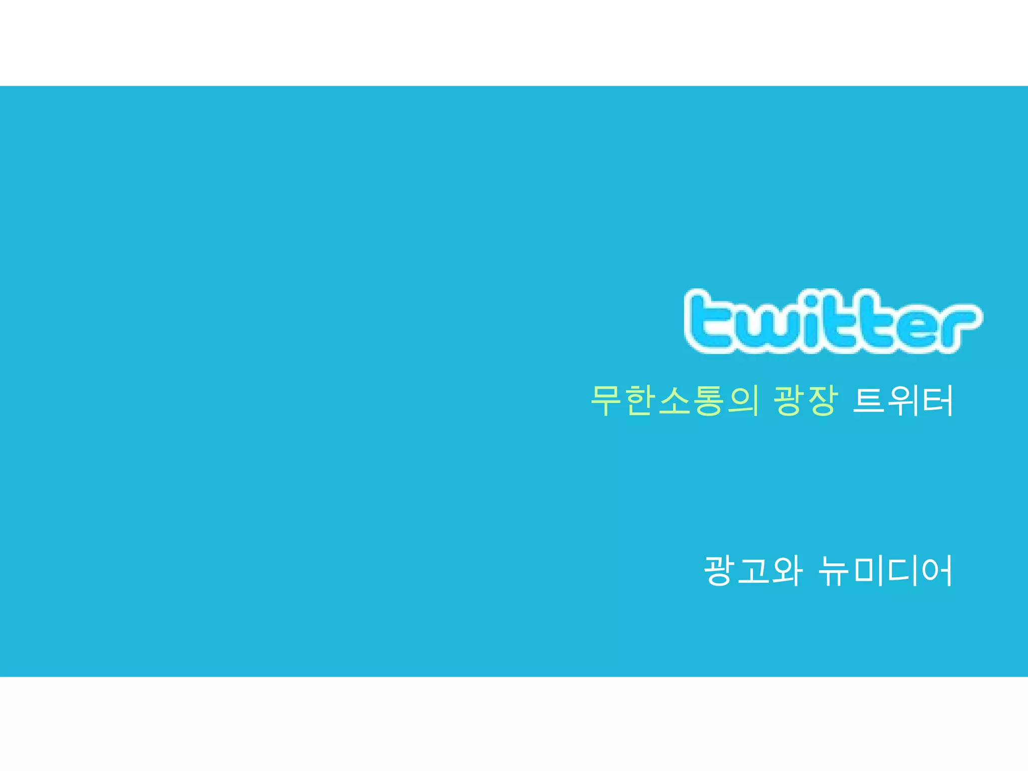 140 자 이내로자신의 생각을 표현하는 실시간 메시징과 웹을 결합한 트위터 (Twitter) 트위터는 단순히 메시지를 전달하는 서비스 플랫폼일 뿐 사용자들이 직접 만든 문화적 요소 가 상당히 많다