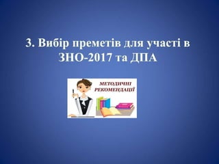 ВИБІР ПРЕДМЕТІВ ДЛЯ ЗНО-2017