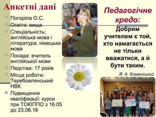 (2016), ІІ місце - (2015),районна олімпіада ІІІ