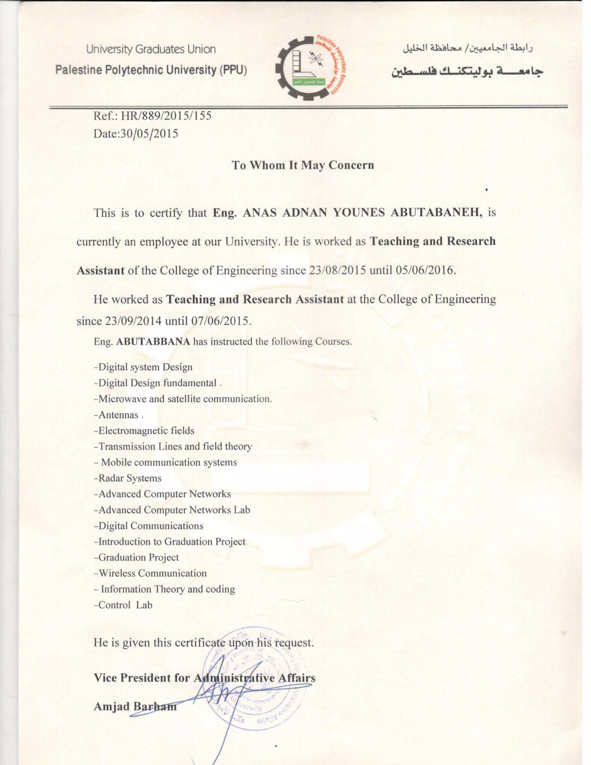 شهادة خبرة موثقة سنيتن-انجليزي-جامعة بوليتكنك فلسطين (1)