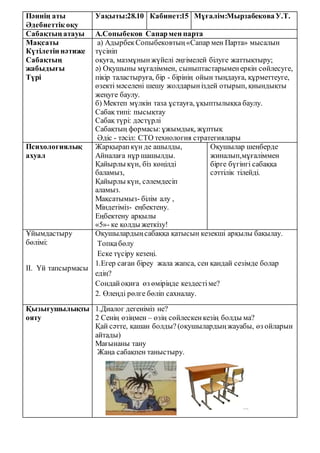 Сабақтың атауы А.Сопыбеков Сапармен парта